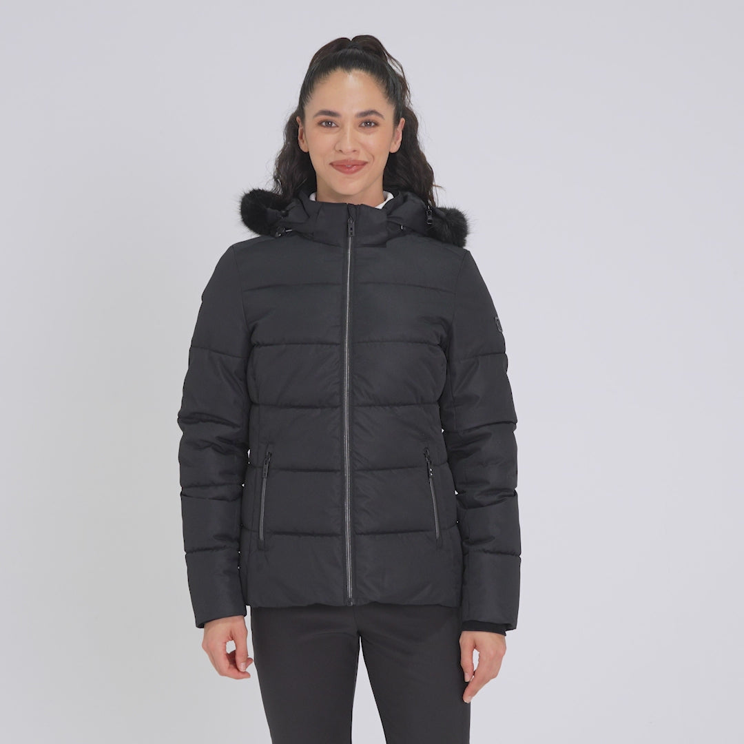 The versatile detachable hood with removable faux fur trim allows you to customize your look, while the chin guard ensures comfort during challenging conditions. Experience unmatched protection with sophisticated style on every run.
