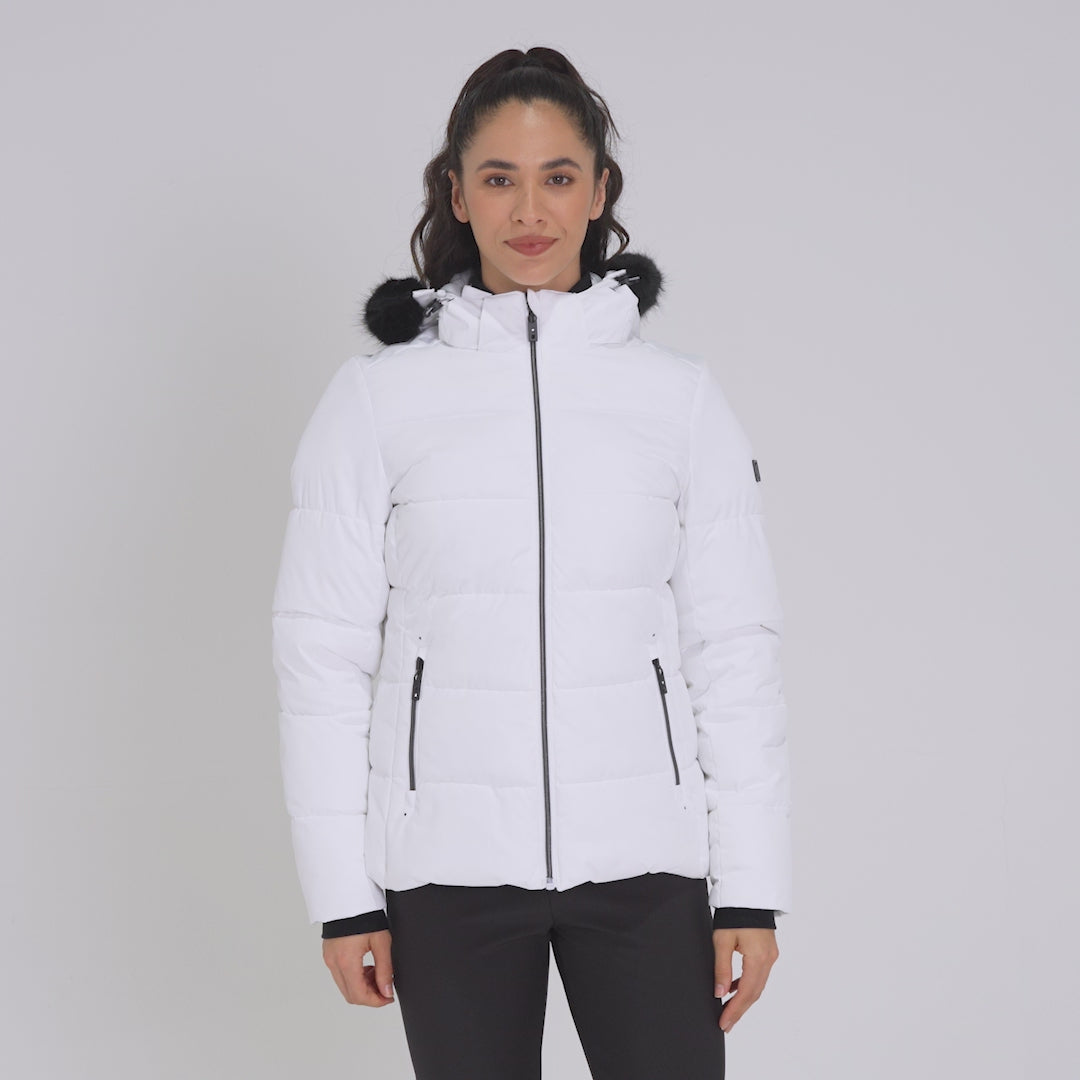 Complete with a stylish detachable hood and removable faux fur trim for versatile mountain-to-resort wear.